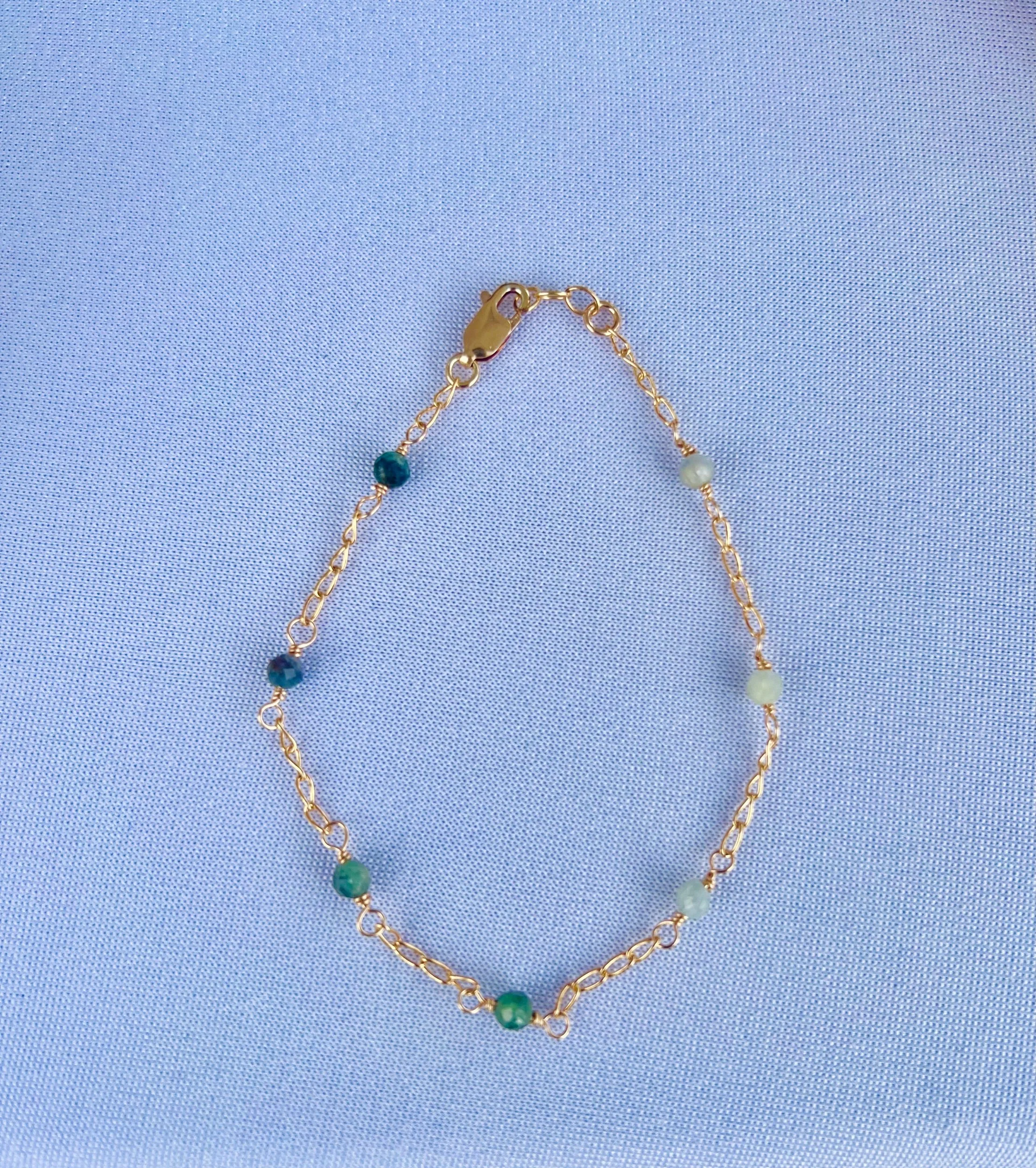 Lapis, Citrine and 14/20 3mm Gold Fill beads. Bracelet is finished with a 14/20 Gold Fill Lobster clasp and a 1 inch Gold Fill extender chain.